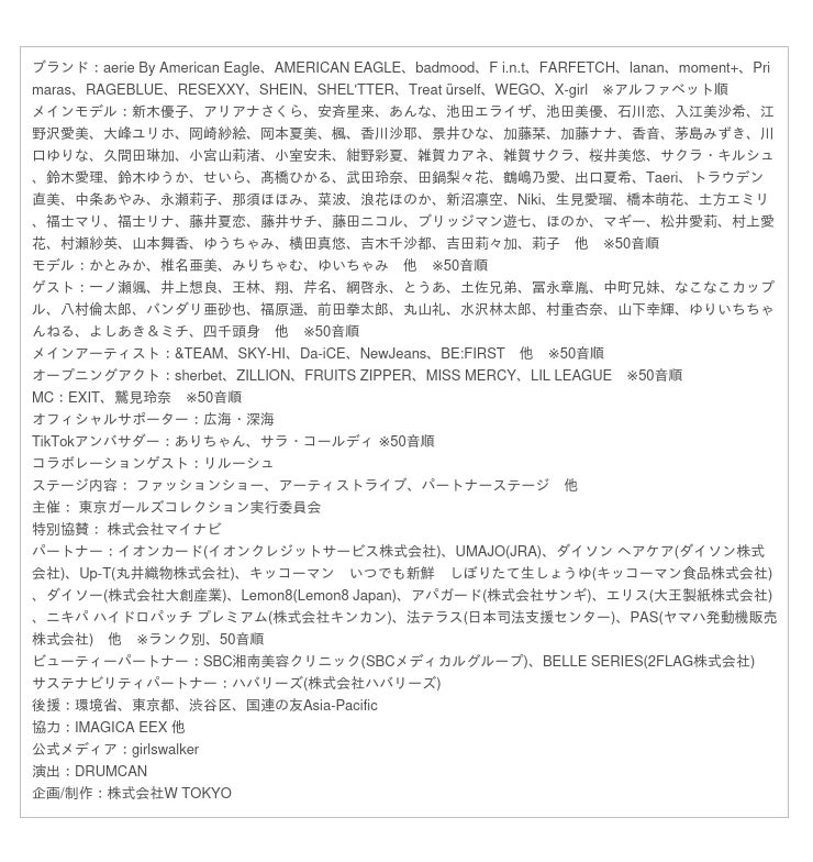 TOKYO GIRLS COLLECTION 公式サイト:https://tgc.st/