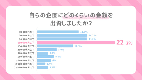 まずは、先ほど「実際に主催者側(自分)でセンイル広告を出したことがありますか?」という質問にご回答いただいた42%の方に、「自らの企画にどのくらい出資したのか」を聞いてみると、このような結果に!
