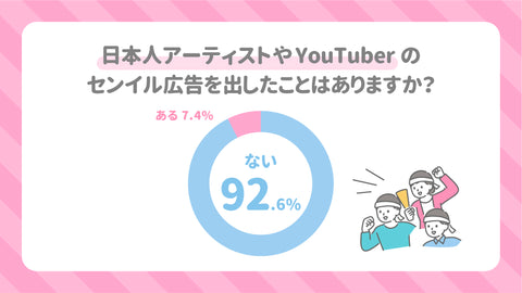 今回、「日本人アーティストのセンイル/応援広告を出したことがあるのか」を調査したところ、約92%の方が「ない」と回答しています。