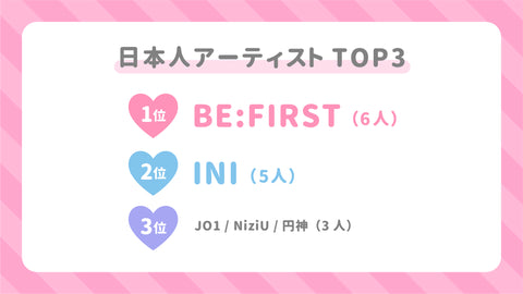 同率3位となった「ENHYPEN」と「NCTグループ」は、どちらも日本でのドーム公演を成功させるなど、日本での人気の高さがうかがえます♪