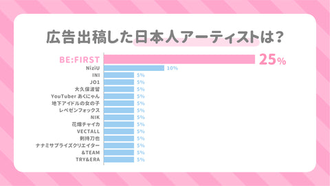 先ほどの「センイル/応援広告を出したことがある日本人アーティスト」でも1位となっていたBE:FIRST♪