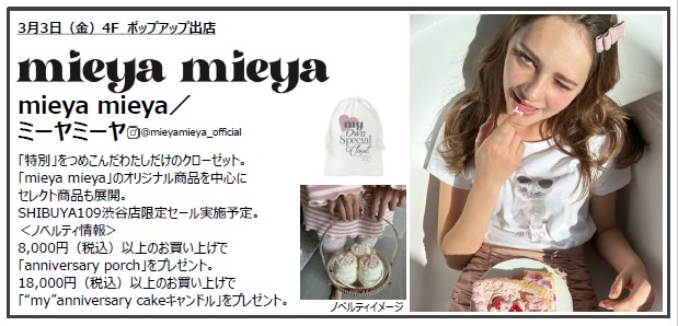 開催場所:SHIBUYA109 渋谷店 COCO SPACE (店頭イベントスペース)