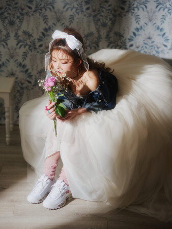 このスペシャルなコラボレーションのヴィジュアルは、Laura Ashley・スポーティー・ギャルを融合させた世界感を表現。ギャルモデルで大人気、大活躍のゆうちゃみさんを起用し、Laura Ashleyのウェディングドレスをベースに