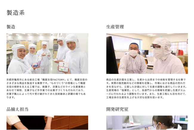 今後も「採用についてのQ&A」や「先輩社員の声」「お仕事一日密着」などの新たなコーナーも追加を企画致しております。今後とも、鶴屋吉信をどうぞよろしくお願い申し上げます。