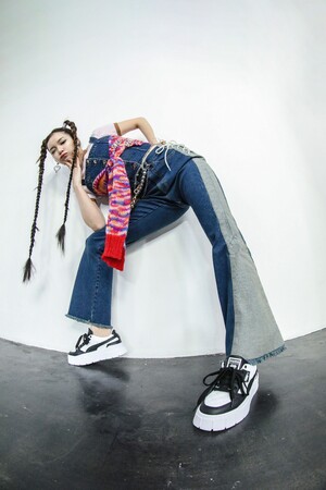 アッパーにはatmos pinkのロゴが型押しされ、さりげないデザインが可愛い仕上がり。更にヒールカウンターの左足にはPUMA、右足にはatmos pinkのロゴという左右が揃うことでコラボレーションブランドが完成するという遊び心も。ちょうどよい厚底はトレンド感もありつつスタイルアップに繋がるのも嬉しいポイントです♪