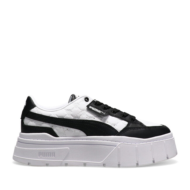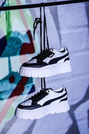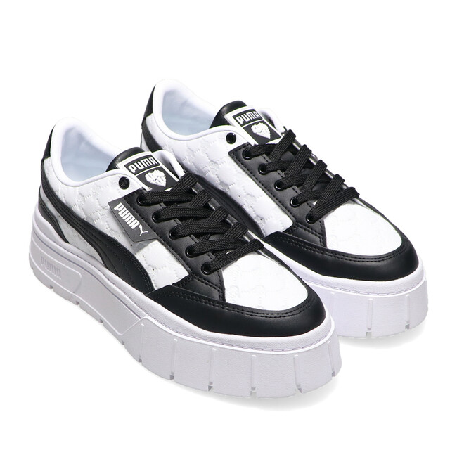 フレアデザインが特徴のPUMA人気モデルの「MAYZE STACK」からatmos pinkとのコラボレーションが3月10 日(金)に登場致します! ブラック×ホワイトのカラーリングはストリートファッションを愛する HYPEGIRL” に向けた1足に(ハート) ストリートさはありつつも、ブラック×ホワイトのカラーリングは幅広いスタイルともマッチングする万能カラーいつものスタイルにも合わせやすく、ちょっぴりストリートファッションに挑戦してみたいGIRLSにもおススメ間違い無しです♪