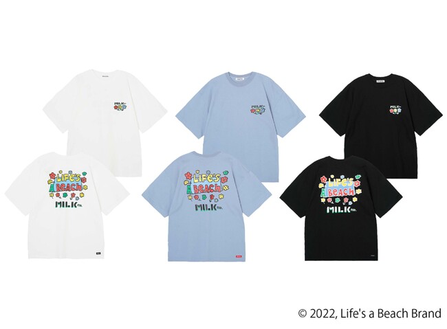 ・MILKFED.×LIFE’S A BEACH FLOWER S/S TEE(WHITE,BLACK,LtBLUE)¥6,050 intax