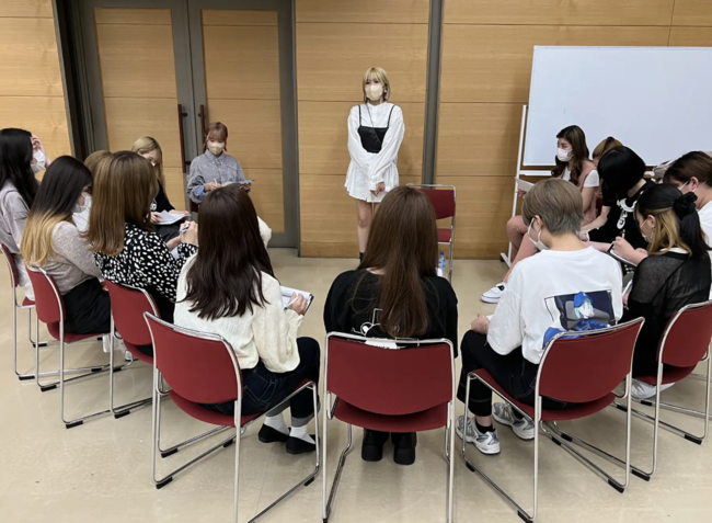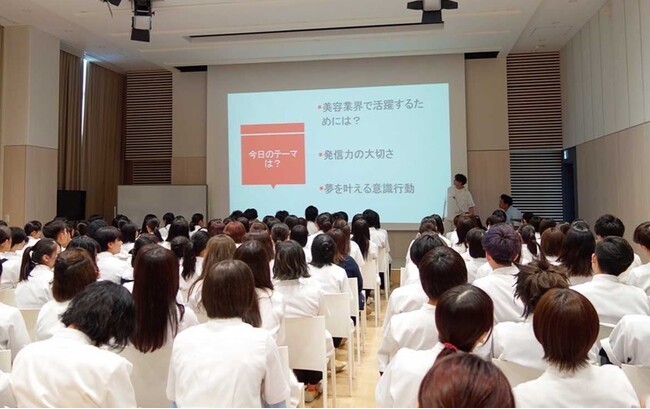 ヘアメイク師という職業の認知浸透と啓蒙を加速させる活動の一環として、全国各地の美容専門学校へ訪問し、講演を行っています。これから美容業界を目指す美容学生との交流を深め、新たな美容師としての在り方や働き方の多様性について発信中です。