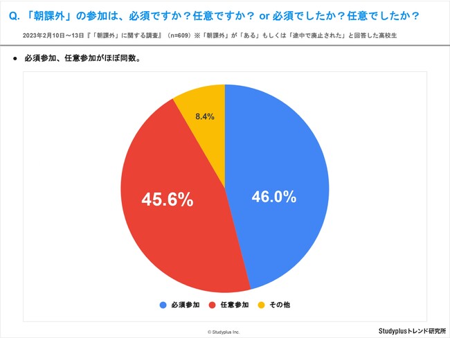・必須参加が46.0%、任意参加が45.6%とほぼ同数に。