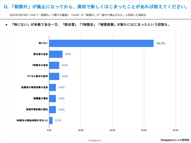 ・「朝自習」「7時限目」「補習授業」が新たにはじまったという回答も。