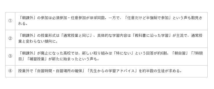 ※「朝課外」が「ある」もしくは「入学してからしばらくはあったが、途中で廃止された」と回答した生徒に質問。