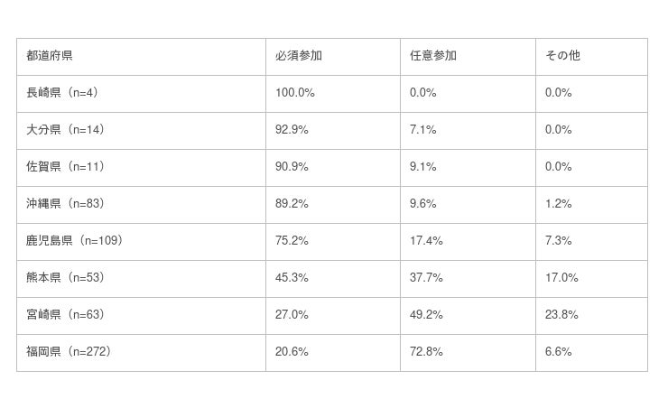 ・必須参加が46.0%、任意参加が45.6%とほぼ同数に。
