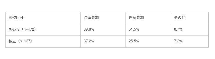 「任意だが授業が進むため参加しないと勉強についていけなくなるため、ほぼ強制参加。」