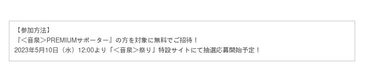 ★両イベント共に「<音泉>PREMIUMサポーター」の方を無料でご招待!