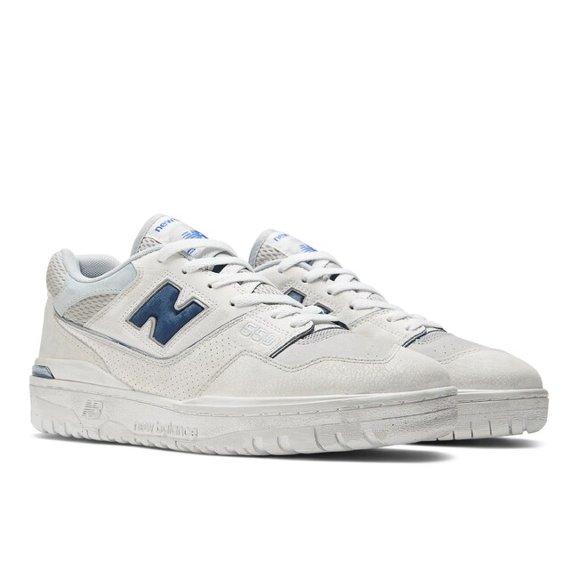 80年代にリリースされた競技者向けバスケットボールシューズを復刻したBB550。ライトグレーのヌバック、スエード、レザーとメッシュの様々な異素材を組合せて立体感を表現したアッパーにグリップ性に優れたラバーのアウトソールにラバーチップをブレンドし、グリップ性を向上。アッパーとソールには、月面を歩いた後のイメージを表現した特殊加工が施された「Grey Day」エクスクルーシブカラー。