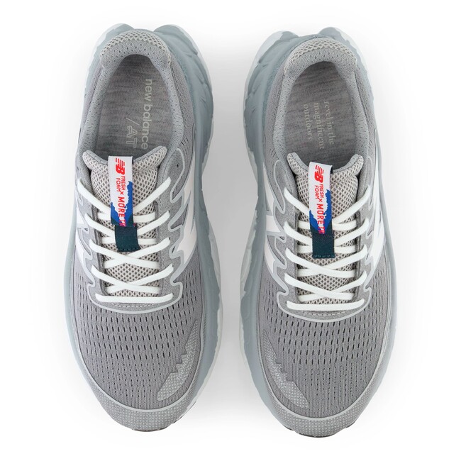 ニューバランスパフォーマンスランニングシューズ“Fresh Foam”シリーズ史上最も厚く、やわらかい“Fresh Foam x”ミッドソールを有するトレイルランニングモデル。様々なグレーのトーンにホワイトのコントラストのNマークが映えるエンジニアードメッシュアッパーは足を心地よく包み通気性に優れ、厚底ミッドソールを2層構造設計にすることでクッション性と安定性を両立。トレイルシーンの環境下で爪先部を守るTOE PROTECT、アウトソールにはVibram Eco-Step EVOを採用。ニューバランスのアイコニックカラーのグレートーンにブラッシュアップした「Grey Day」エクスクルーシブカラー。