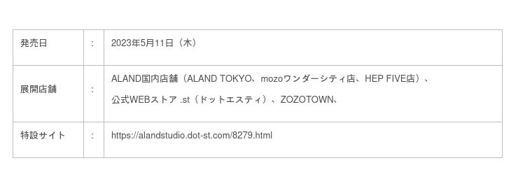 ALANDは、アパレルだけでなくコスメや生活雑貨など、ライフスタイルコンセプトストアとして多数のデザイナーズブランドアイテムを取り揃える韓国発のセレクトショップです。この度、昨年7月に販売したアメリカのコミックキャラクター「キャスパー」とのコラボレーションアイテムが好評だったことから、2度目のコラボレーションアイテムを5月11日(木)に発売します。