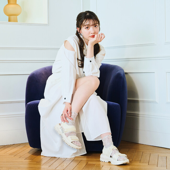 今回の撮影に関して雑賀サクラは「温かい現場で、スタッフの皆さんと本当に楽しく撮影させて頂いて、素敵に仕上がっていると思います!」と撮影を楽しんだようです。また、今回の新商品に関しては「サンダルはどれもとても可愛く、そして実用的で、私も早く履きたいです!」とおすすめポイントを語っています。