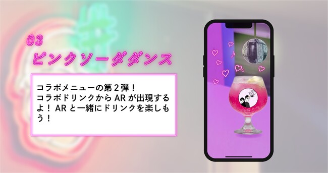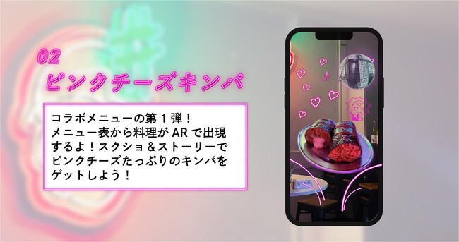 期間中は、店舗内外での「イメージキャラクターぐんお君」ARの出現やいぱたものイメージカラー、ピンク色に合わせたコラボメニュー「ピンクチーズキンパ」「ピンクソーダダンス」が限定登場し、メニューやメニュー表からもARが飛び出します。
