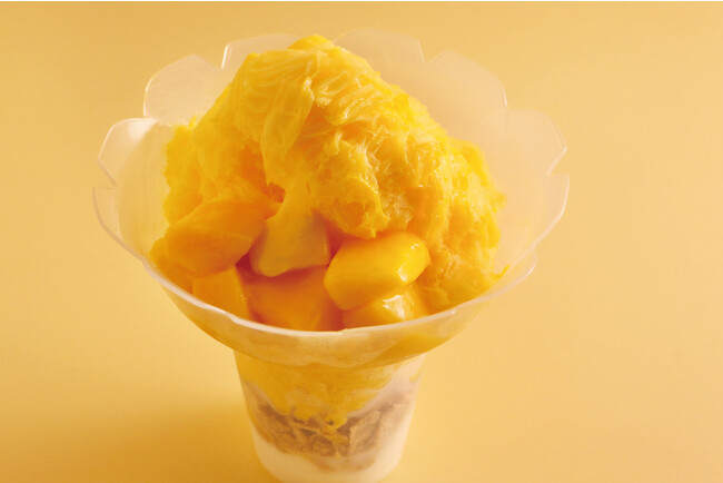 濃厚なマンゴー味のふわふわでボリューミーなミルクかき氷。