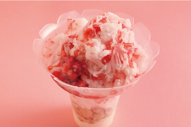 ミルクと苺を丸ごと凍らせた氷を削った色味も可愛いふわふわで柔らかなかき氷。