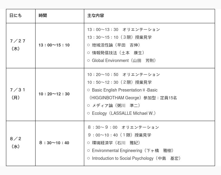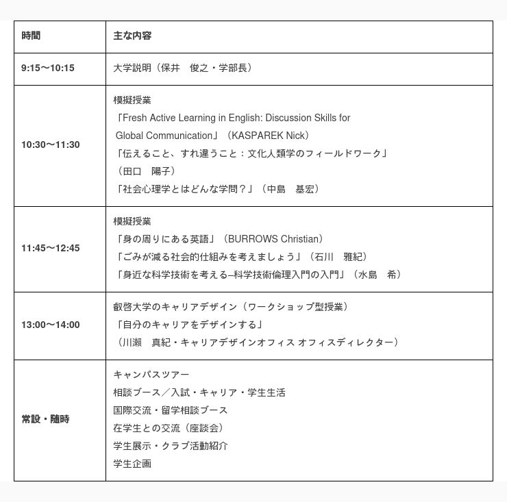 2023年7月27日(木)から8月2日(水)まで、高校生・受験生、保護者、高校教員等を対象にオープンキャンパスを開催します。