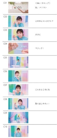 今回の「マジカル☆ハンドダンス」篇では、浜辺美波さんがMagicを手に取りながら、手品のような華麗なハンドダンスを披露しています。はじめは浜辺さんが手に1枚だけ持っていたかのように見えたレンズケースが、一瞬で複数枚に早変わりします。コンパクトさや、スマートタッチ仕様で裏表の確認が不要な手軽さを軽やかな歌にのせ、ダンスとともに伝えています。つい真似をしたくなるようなリズミカルな浜辺さんのハンドダンスにご注目ください。