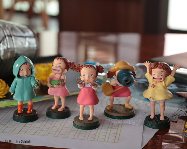 ジブリがいっぱい どんぐり共和国で人気のブラインドパッケージの手のひらサイズのフィギュア、“ポーズがいっぱいコレクション DX”にメイちゃんが登場します。マックロクロスケを捕まえたら手が黒くなってしまったメイちゃんや、サツキと喧嘩し、とうもろこしを抱きしめて泣きじゃくるメイちゃんなど、映画のワンシーンを思い出すポーズが揃っています。シークレット1種は、どんなポーズがでるかお楽しみです。