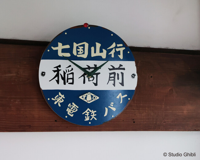 サツキとメイがお父さんを待っていたバス停の看板を本物のように再現した壁掛け時計です。