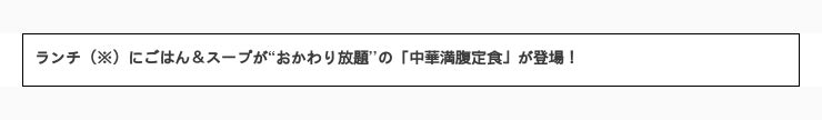 ※ 「中華満腹定食」のランチメニューは、平日・土曜オープン~17時限定となります
