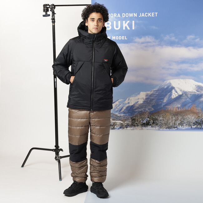 中綿に DX ダウン、表地にオーロラテックス (R)を採用した、フード付きのダウンジャケットで す。前モデルのデザインを踏襲しつつ、腕の動きに合わせて袖を前ぶりに設定したり、冷気の 侵入を防ぐ内襟を採用するなど、細かな仕様の見直しを行いました。
