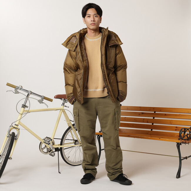 中綿にUDDDXダウンをたっぷり封入したジャケットは、製品化までに3年を要した開発者肝煎りの一着。表地はナイロン100%の軽量撥水マテリアルながら、オイルドコットンのような風合い。機能性と高級感を兼ね備えた、メイドインジャパンモデルです。