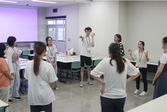 英語の集中講座や文化交流を目的に、約2週間の「学内留学」で活きた英語にたっぷりひたれます。文学部の英語英米文学科、国際教養学科の学生はもちろん史学科、教育学科、家政学科、管理栄養士養成課程、看護学科、心理学科の学生も参加し、総勢21名が夏休みに語学力アップを目指します。今年で14回目を迎える特別授業は、コロナ禍が落ち着き、日常をとり戻せたことで実現した、4年振りの開催となります。