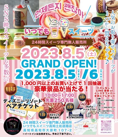 全国100店舗の美容サロンを展開する株式会社Createur(クレアトゥール)(所在地:広島県中区、代表取締役:乙津健太朗)は、おいしいスイーツを手軽に!をコンセプトに~無人スイーツ販売店~「いつでもスイーツ高知土佐道路店」を8月5日(土)にオープンします。