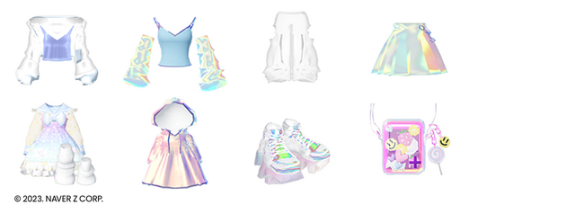 メルヘンなアイテムから動物まで幅広い制作を得意とするクリエイターゆさyusa氏と、ファッションアイテム全8型を制作しました。「NEO HARAJUKU」をテーマに、ネオンに発光するキャミソール、オーロラ素材のワンピースやスカート、シースルー素材のワイドパンツなどリアルなお洋服の形をベースに、repipi armarioならではの一歩先の近未来の可愛いとおしゃれを追求したデザインやエフェクトで表現しました。