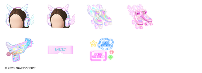 27万人のフォロワー数を誇り、幅広い動きのエフェクト・アイテム制作を得意とするクリエイターE.LE.NA.氏と全5型(カラーバリエーション2型)のファッションアイテムを制作しました。テーマの「NEO HARAJUKU」でもある一歩先の可愛いとおしゃれを表現するために、モクモクの雲をなびかせて走る天使の羽つきのローラースケート、ネオンに発光するヘッドフォン、「レピピアルマリオ」の文字をあしらったネオンサイン、ネオンアイマスクなど1アイテムからでも楽しめるアイテムになりました。