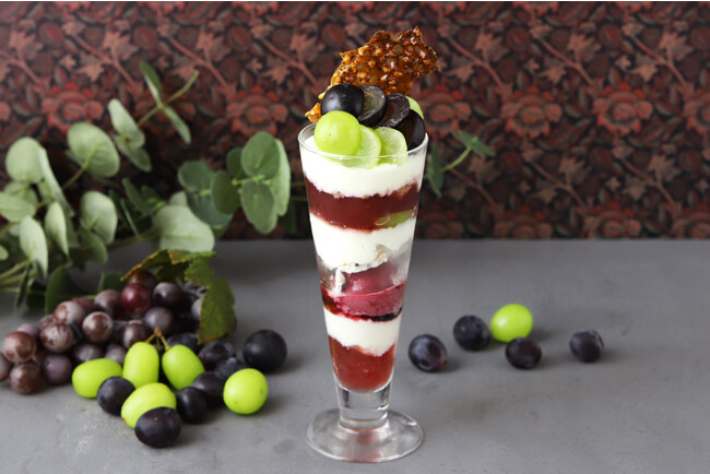 クランブルにメレンゲのサクサク感とともに、2種類のぶどうを贅沢に味わっていただけるパルフェです。