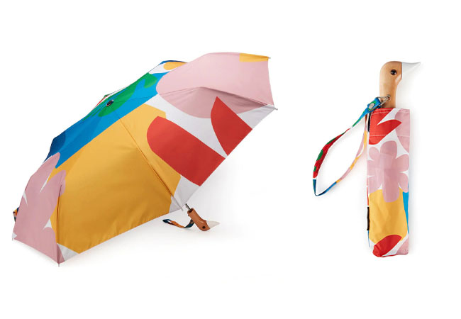 つぶらな瞳が特徴のちょっと変わった折りたたみ傘。アンブレラの生地はリサイクルしたペットボトルから作られ、アヒルの顔のような持ち手はハンドメイドです。