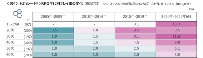 「シミュレーションRPG」は、ウマ娘プリティダービーが発売された2020年代に入ってからのプレイ率が高い。<図4>