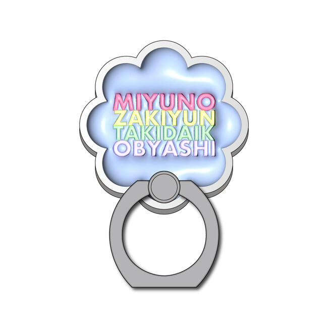 野咲美優・小林希大・Yuntaの名前が入ったスマホリングです。
