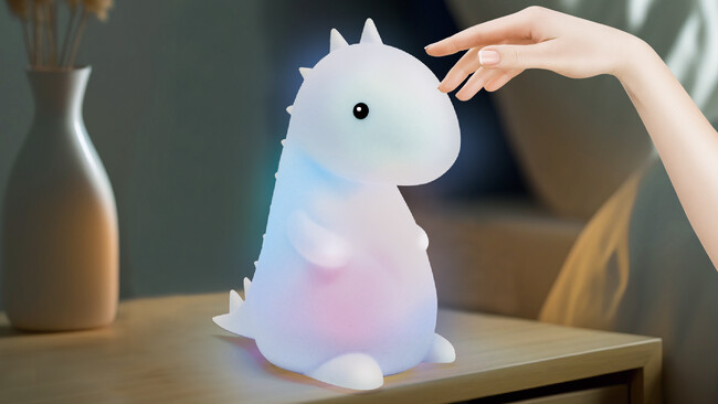 特徴:シリコン素材で触りたくなるプニプニ触感がくせになる!ふんわりした灯りで部屋をやさしく照らすかわいい恐竜ランプ。タッチする度にグラデーション点灯を含む全5種類のライトに切替が可能です。ベッドサイドやテーブルランプに!