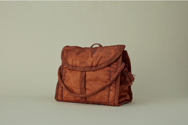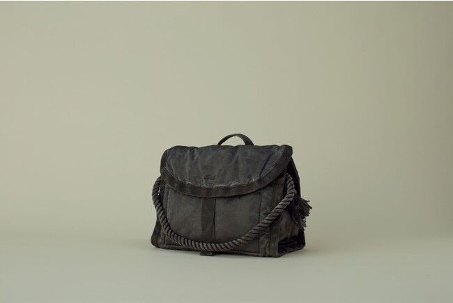 OLDNEW はNEWSPAPER BAG(L) とNEWSPAPER BAG、SHOULDER BAG、RUCKSACKの全4型で、柿渋染めをした「KAKISHIBU」色と、柿渋で下地染めしたバッグを、鉄分の多く含まれた水につけることで黒くさせる「暮染め」を施した「KURE」色の2色展開です。