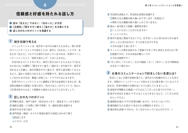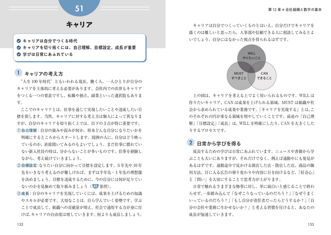 原則として各テーマを見開きで構成し、文章だけでは分かりにくい部分はイラストや図解を盛り込むことで、読みやすい構成に仕上げています。最初から順番に読んでいただいても、「ちょっと確認したい」という時に該当するテーマをパッと開いて目を通していただくような使い方もおすすめです。本書が、ビジネスパーソンとして順調な一歩を踏み出すことに役立てば幸いです。