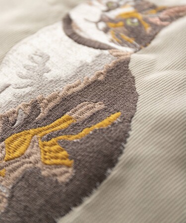 可愛らしい猫ちゃんを、高級感のある立体刺繍で表現。