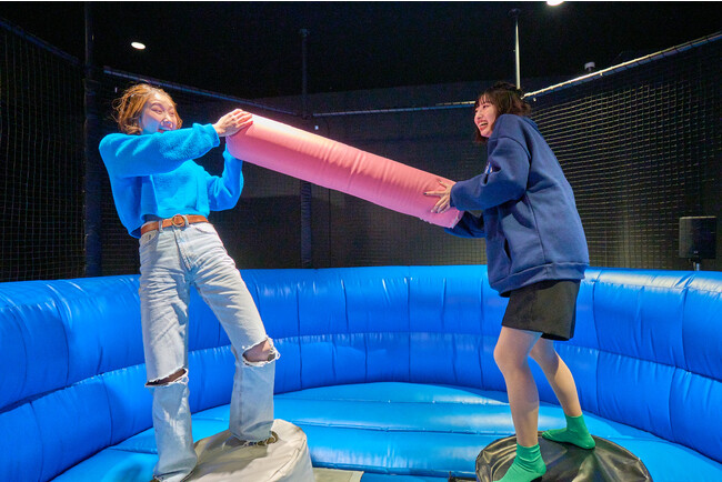 体を動かしながらまるでバラエティ番組に参加しているような体験ができる新感覚のバラエティスポーツ施設です。学生グループやファミリーのお客さまから、「全力ではしゃげる施設」と多くの支持を得ています。