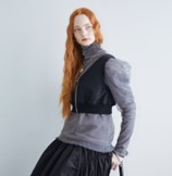 前後・表裏着用可能で4way仕様になったMA-1ビスチェ。ギャザーを寄せたチュールのフワッとしたエアリー感と、ミリタリーテイストがマッチした絶妙なニュアンスが魅力です。チュールを裏にするとMA-1のモードな着こなしを楽しめます。深めのVネックとクロップド丈ですっきりとした印象にリバーシブルMA-1スカートとのセットアップコーデがおすすめです。
