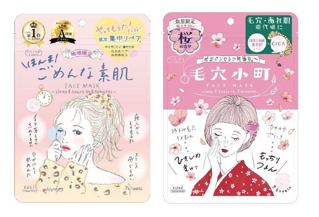 コーセーコスメポート株式会社(本社:東京都中央区、代表取締役社長:小林 孝雄)は、スキンケアブランド『クリアターン』より関西エリア限定※1パッケージの「ほんまごめんな素肌マスク」を2023年12月1日に、また桜エキス※2を配合し、つやめくうるおい美肌にみちびく「毛穴小町 桜香るマスク」(1品目1品種、ノープリントプライス)を2023年12月11日より全国の量販店・ドラッグストアを中心に数量限定で発売します。