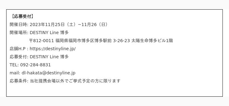 ・住所 〒812-0011 福岡県福岡市博多区博多駅前3-26-23 太陽生命博多ビル1階