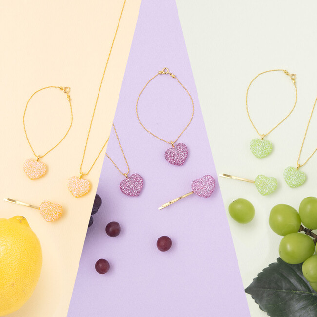 大人気の『ピュレグミ』よりアクセサリーのコレクション商品が新登場♪ネックレス・ブレスレット・ヘアピンをラインアップ♪ピュレグミレモン・ピュレグミグレープ・ピュレグミマスカットの3色展開です♪ハート型の収納袋付き♪