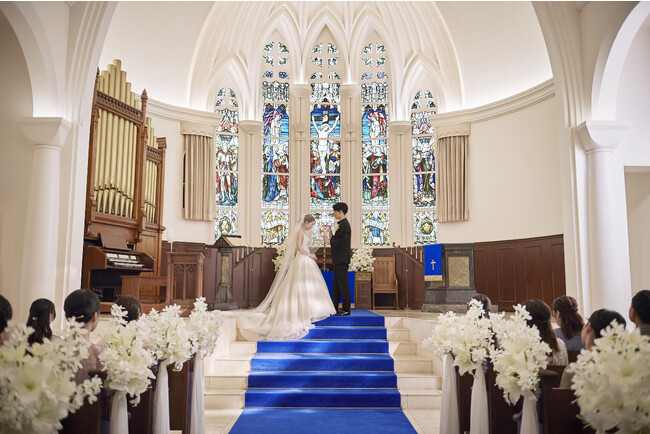 「NEW YEAR フェス」では、光り輝くステンドグラスを始め、歴史ある厳かな空間、ドレスが映えるロイヤルブルーのバージンロード、チャペルに響く聖歌隊の歌声など、実際に訪れてみないと分からないチャペルの魅力と、ご家族との絆を深める「アニヴェルセルオリジナルのセレモニー」を体験することができます。「家族との繋がりを大切にした結婚式をしたい。」とお考えの方に特におすすめです。